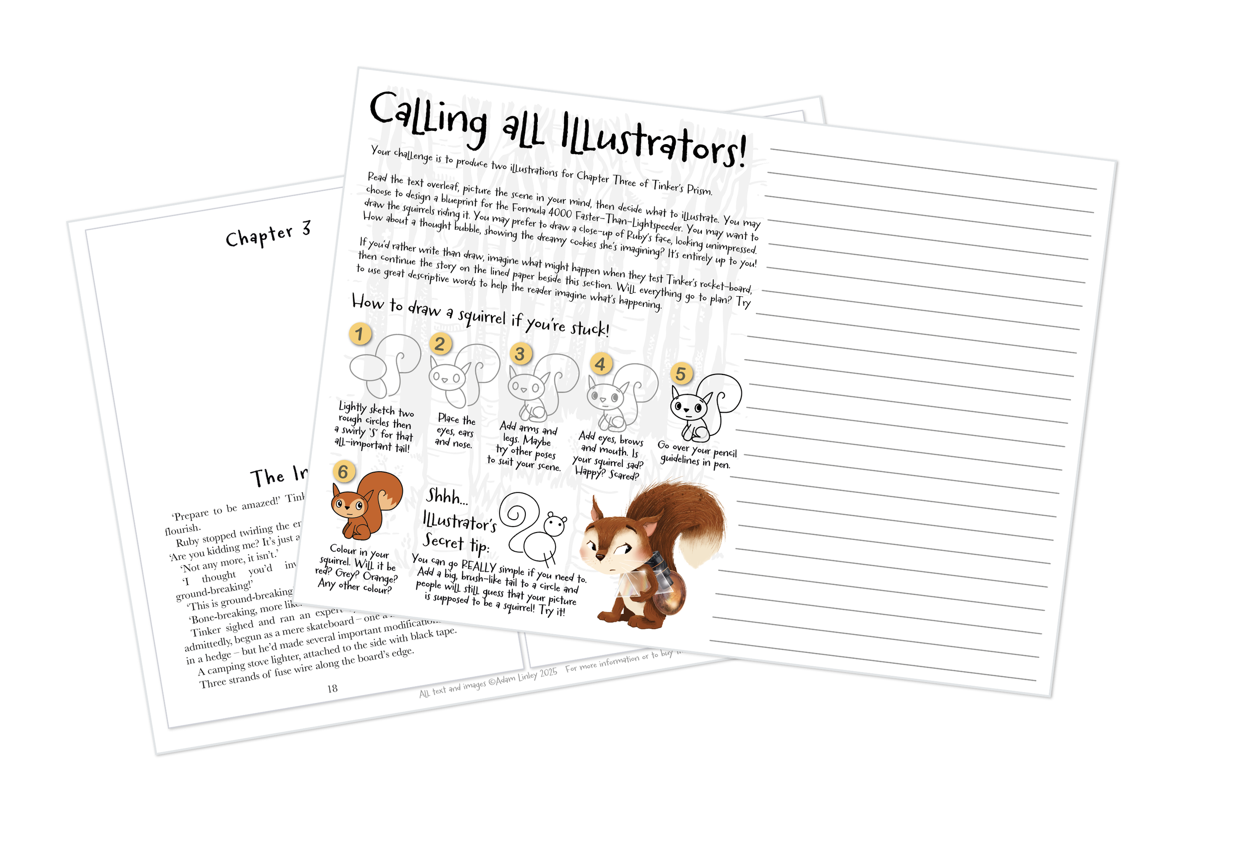The suggested primary activity is to read the short excerpt from Tinker’s Prism then illustrate a double page spread for the book.